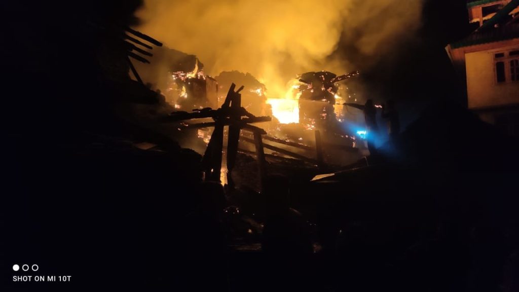 शिमला:- ठियोग तहसील की उप तहसील में पड़ने वाले देहा की ग्राम पंचायत घोरना के बीती आधी रात गांव अरशाला में आग लग गई। नरेंद्र सिंह के घर में लगी आग ने देखते ही देखते 3 मंजिला मकान को अपनी चपेट में ले लिया। आग ने मकान को तो जलाया ही, साथ ही 75 साल के एक बजुर्ग की भी मकान के अंदर जलने से मौत हो गई। मृतक की पहचान जय राम पुत्र रत्ती राम के रूप में हुई है। आग की चपेट में आने से दो गायों के भी अंदर जलने से मौत की खबर है। प्रशासन मौके पर पहुँच गया है और राहत बचाव कार्य जारी है।