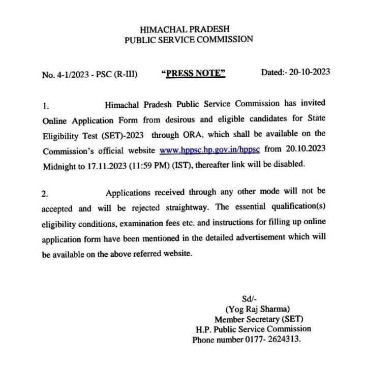 HP SET 2023 : Online Applications are invited, View Full Advertisement…