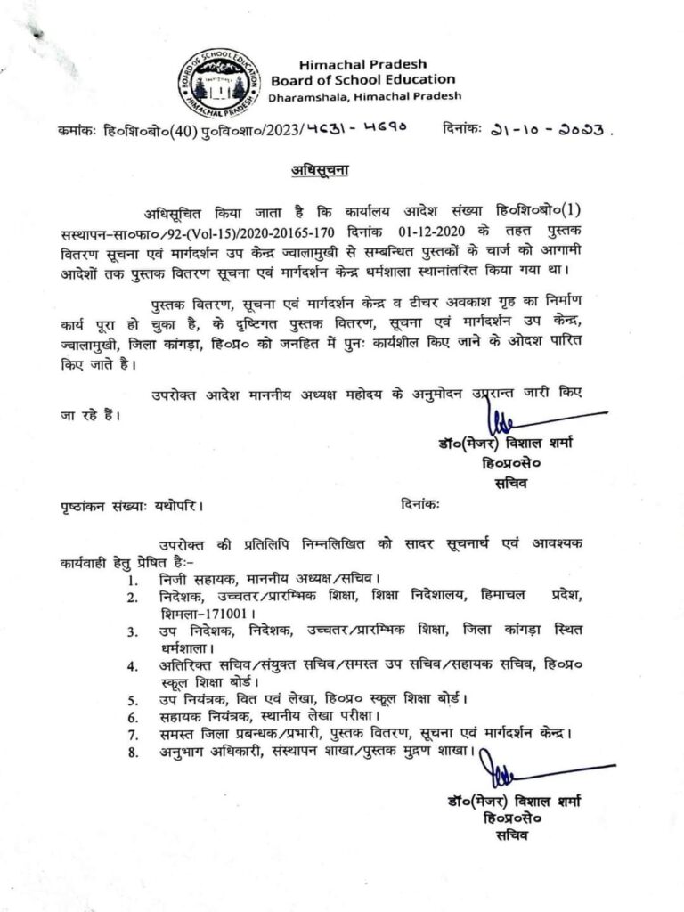 ज्वालामुखी को मिला पुस्तक वितरण, सूचना एव मार्गदर्शन उप केंद्र , पड़ें अधिसूचना…..