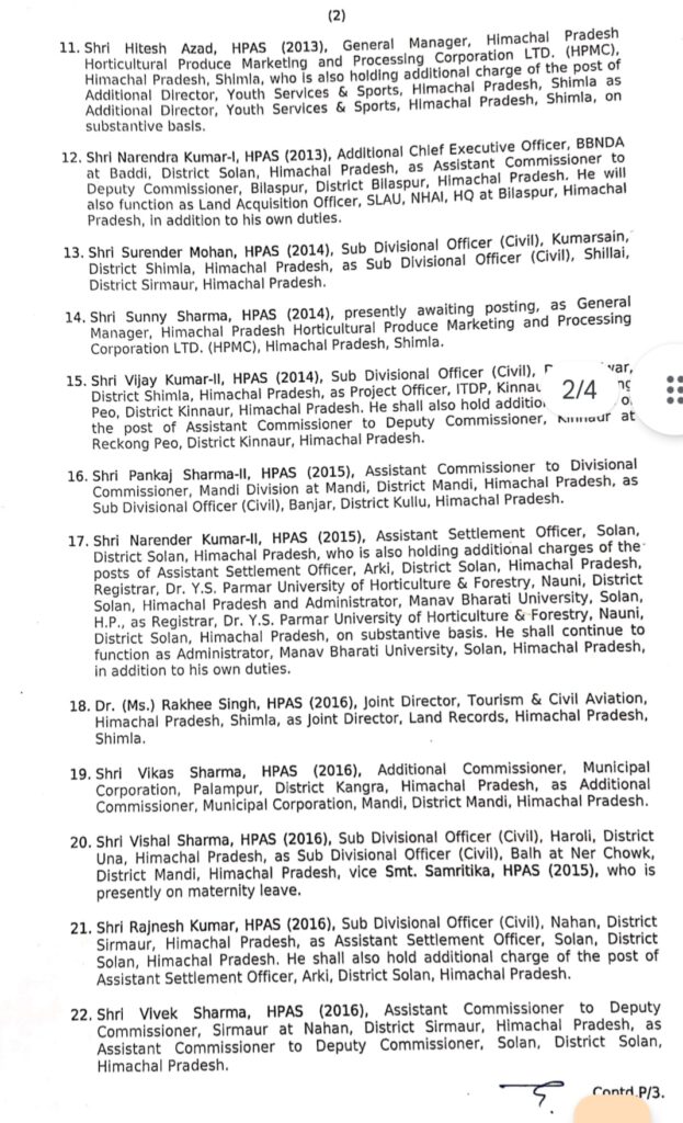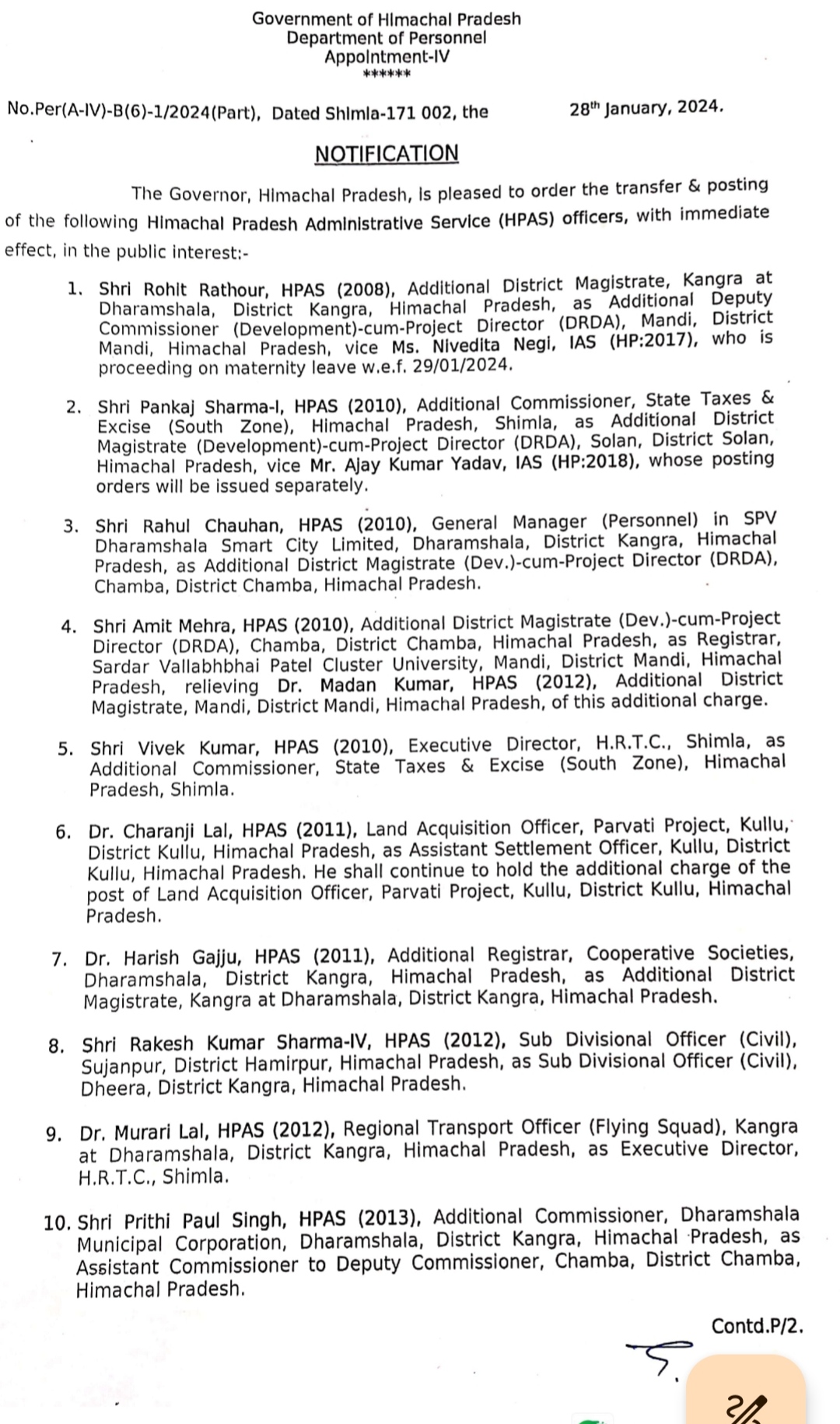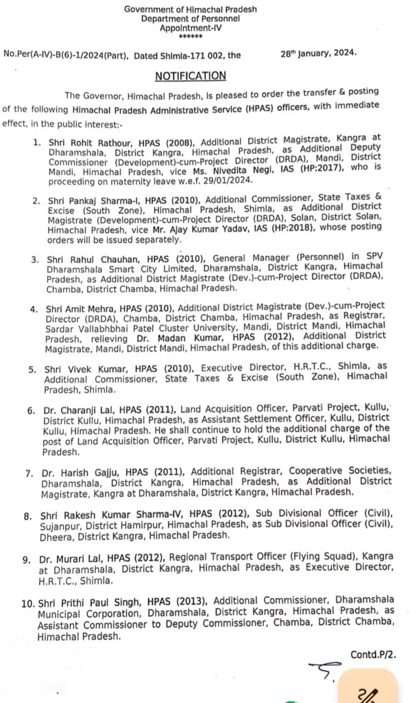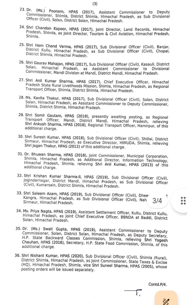 हिमाचल में बड़ा प्रसाशनिक फेरबदल, 42 HPAS बदले…