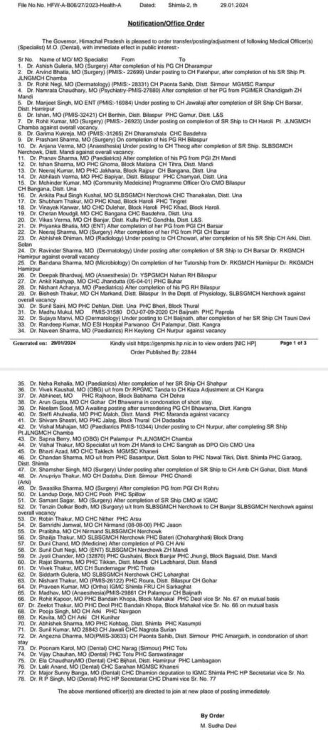 हिमाचल प्रदेश में 78 डॉक्टरों के तबादले.,.