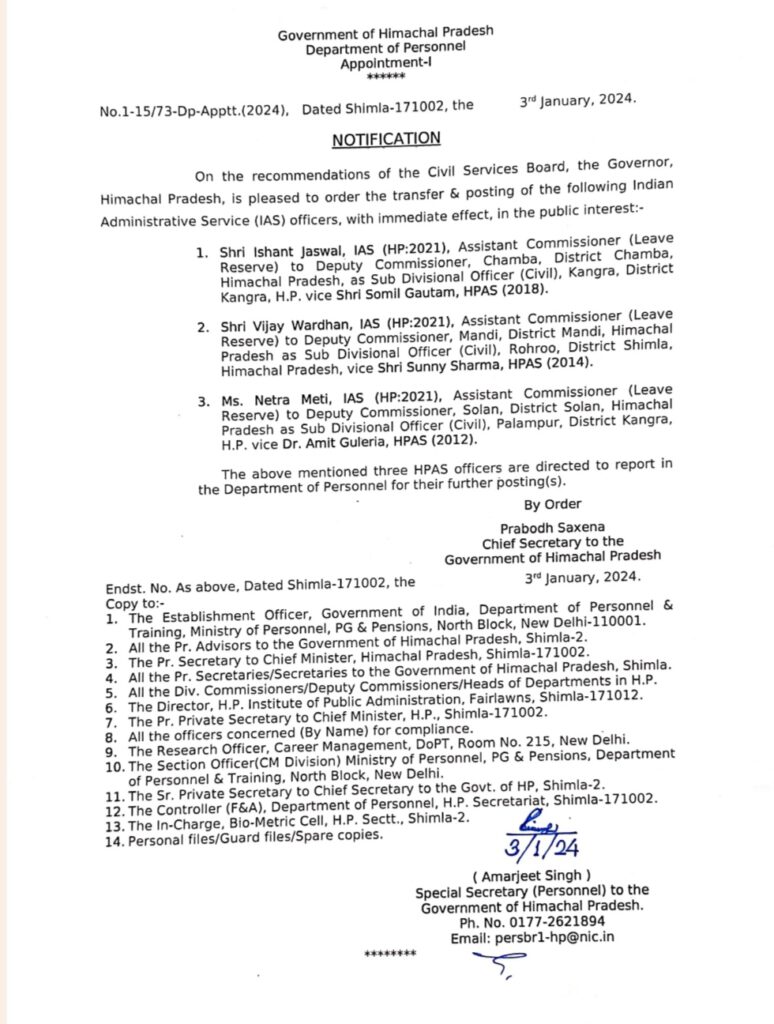 IAS की पोस्टिंग व ट्रांसफर, अधिसूचना देखें…