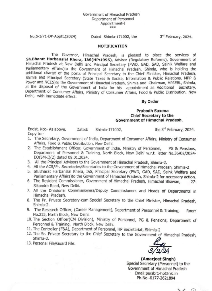 IAS की पोस्टिंग व ट्रांसफर, अधिसूचना देखें…