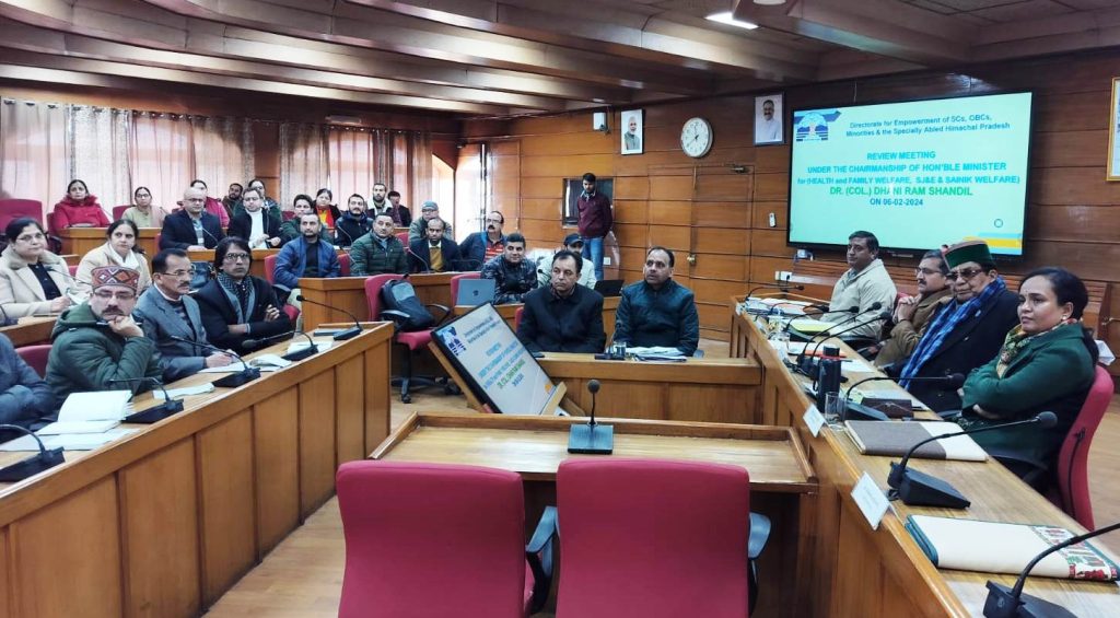 स्वास्थ्य, सामाजिक न्याय एवं अधिकारिता मंत्री डॉ. (कर्नल) धनी राम शांडिल ने आज यहां अनुसूचित जाति, अन्य पिछड़ा वर्ग, अल्पसंख्यक एवं विशेष रूप से सक्षम वर्गों का सशक्तिकरण विभाग की बैठक की अध्यक्षता करते हुए विभाग के तहत क्रियान्वित की जा रही विभिन्न योजनाओं की प्रगति की समीक्षा की।