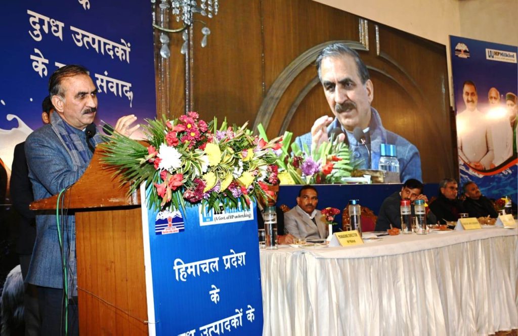मुख्यमंत्री ठाकुर सुखविंदर सिंह सुक्खू ने आज शिमला के होटल पीटरहॉफ में प्रदेश के दुग्ध उत्पादकों के साथ संवाद किया। उन्होंने कहा कि सरकार कृषि को उद्योग के रूप में प्रोत्साहित कर रही है ताकि किसानों को सामर्थ्यवान एवं स्वावलम्बी बनाया जा सके। उन्होंने कहा कि हमारा प्रदेश ग्रामीण अर्थव्यवस्था पर निर्भर है, जिसमें कृषि व दुग्ध उत्पादन की महत्वपूर्ण भूमिका है। प्रदेश सरकार आगामी बजट में किसानों की आय बढ़ाने के लिए नई योजनाएं ला रही है, ताकि पशुपालन और कृषि के बारे में समाज की सोच में सकारात्मक बदलाव आ सके। आगामी दो वर्षों में राज्य सरकार के इन प्रयासों के सकारात्मक परिणाम सामने आएंगे।
