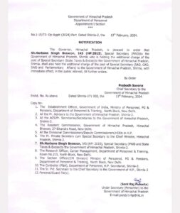आईएएस हरबंस सिंह ब्रास्कोन को GAD व अन्य महत्वपूर्ण विभागों का मिला अतिरिक्त जिम्मा…..