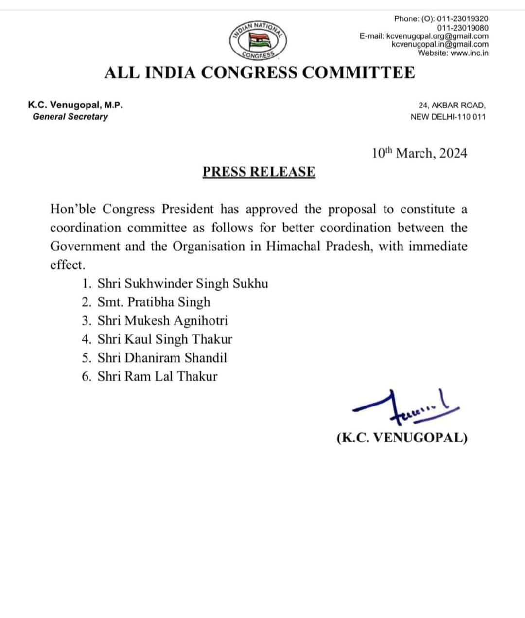 सरकार को संकट से निकालने के लिए बन गई छ सदस्य Coordination Committee……