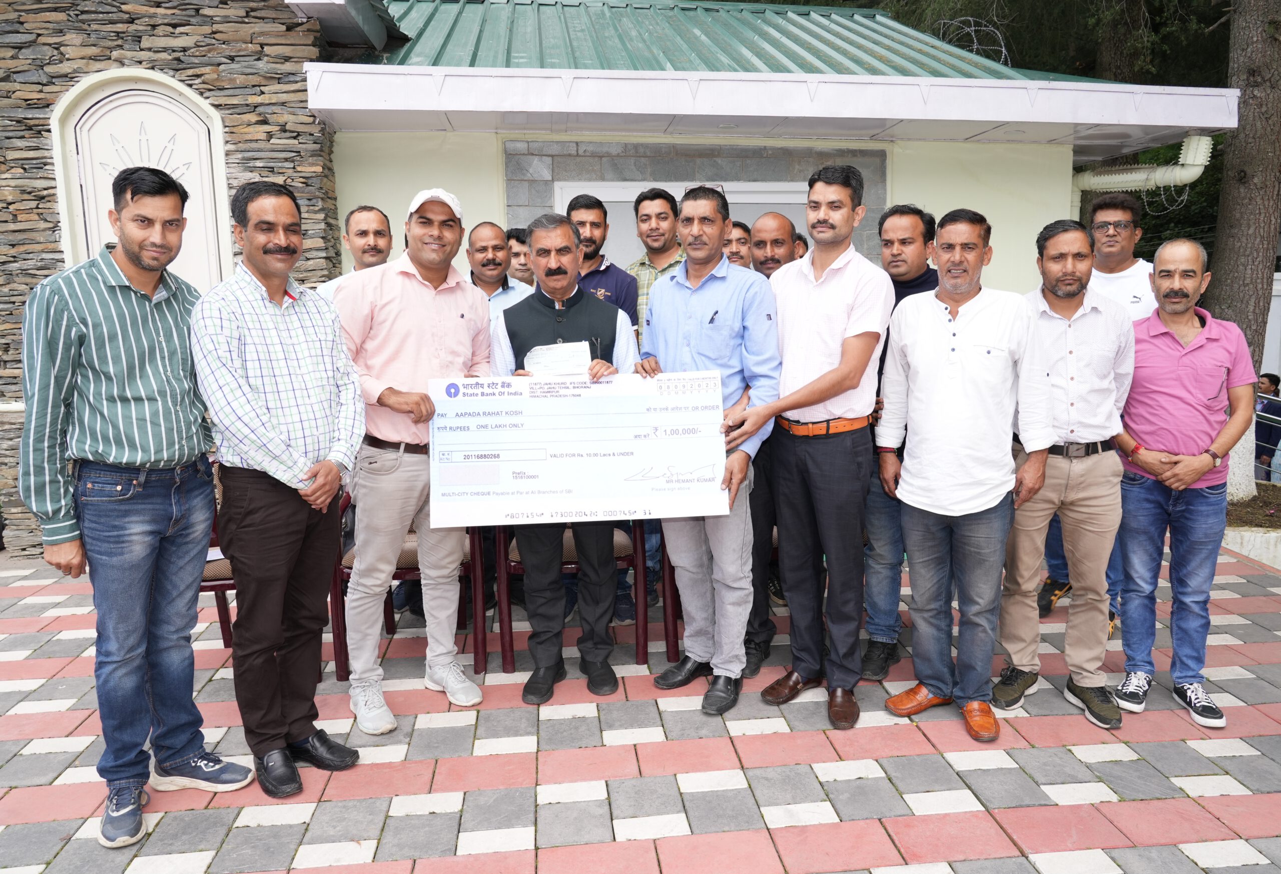 केसीसी बैंक लिमिटेड के कर्मचारी संघ ने अध्यक्ष पंकज धीमान के नेतृत्व में आज शिमला में मुख्यमंत्री ठाकुर सुखविंदर सिंह सुक्खू को आपदा राहत कोष के लिए एक लाख रुपये का चेक भेंट किया।