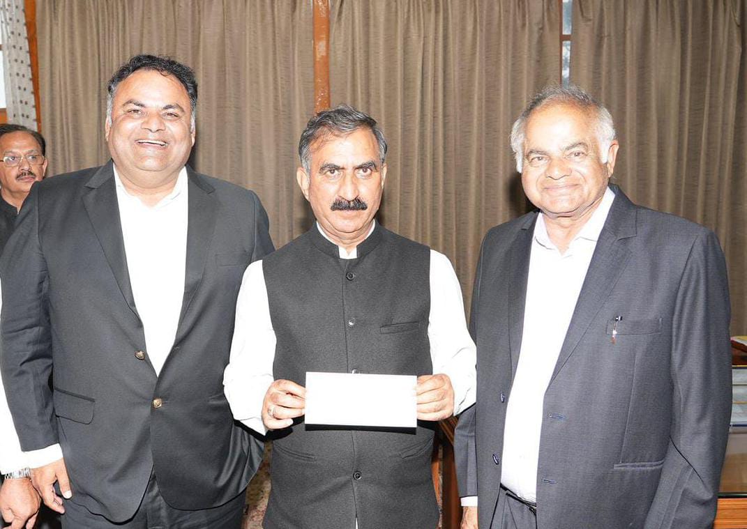 महेश कत्था उद्योग के निदेशक श्री सुरेश कुमार चड्ढा ने मुख्यमंत्री ठाकुर सुखविंदर सिंह सुक्खू को आज शिमला में आपदा राहत कोष के लिए 11 लाख रुपये का चेक भेंट किया।
