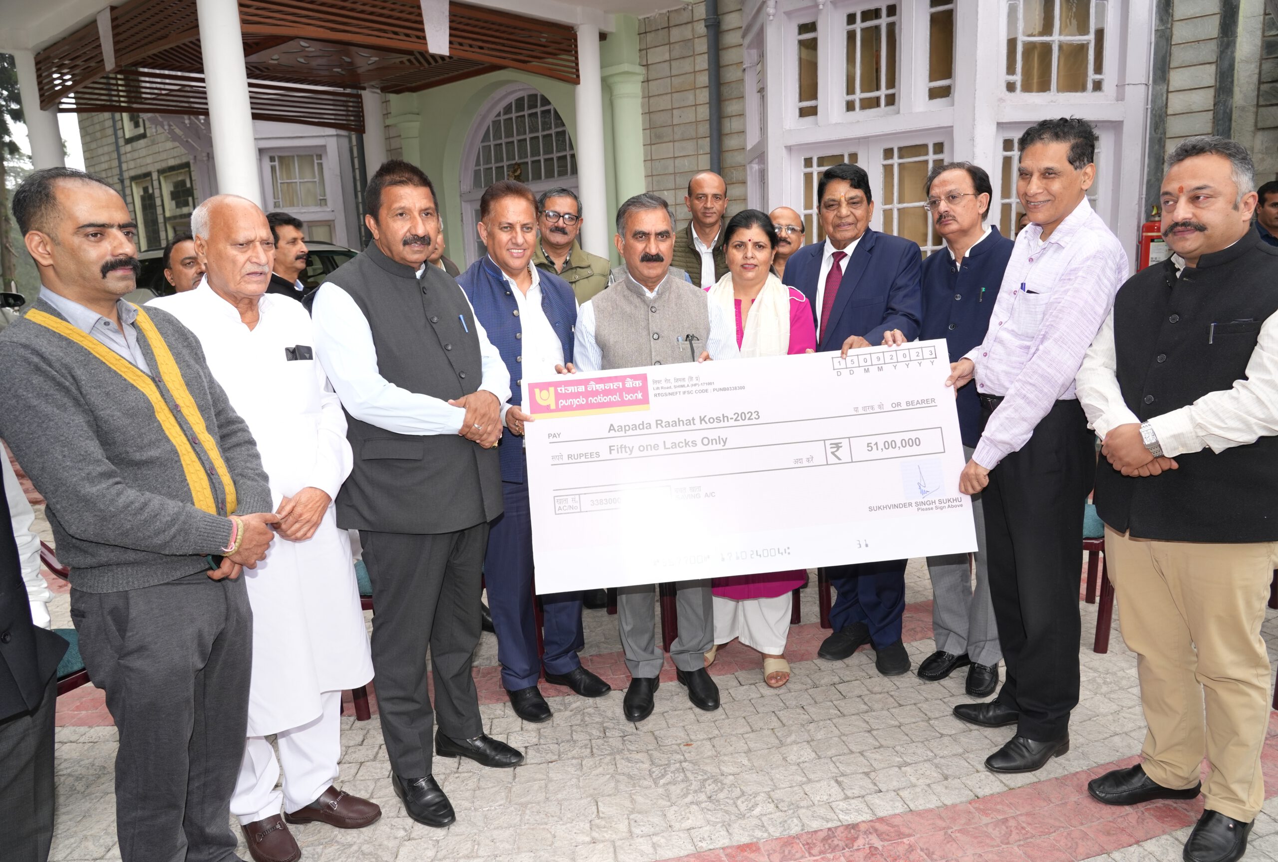 मुख्यमंत्री ठाकुर सुखविंदर सिंह सुक्खू ने पूरे देश के समक्ष एक मिसाल पेश करते हुए भारी बारिश एवं भूस्खलन से आई आपदा से जूझ रहे हिमाचल प्रदेश के लिए अपनी समस्त जमा पूंजी की 51 लाख रुपये की धनराशि आपदा राहत कोष-2023 में दान कर दी है। मुख्यमंत्री ने आज अपने सरकारी आवास ओक ओवर में अपनी धर्मपत्नी कमलेश ठाकुर की उपस्थिति में 51 लाख रुपये का चेक मुख्य सचिव प्रबोध सक्सेना को सौंपा। ठाकुर सुखविंदर सिंह सुक्खू संभवतया देश के ऐसे पहले मुख्यमंत्री बन गए हैं, जिन्होंने पद पर रहते हुए अपनी निजी जमा पूंजी सरकार को आपदा से निपटने के लिए दान में दी है।